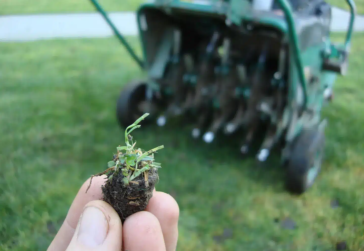 Immediately after aeration, your lawn will be dotted with small plugs pulled from the soil.